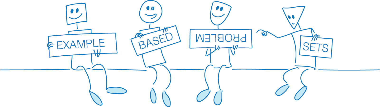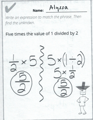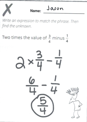 Math by Example project, and students started spontaneously modifying the figures, adding hair, clothes, and props to the cover illustrations. It was really gratifying to see kids playing with the drawings, making them their own—kind of becoming friends with their math workbooks! (see below)