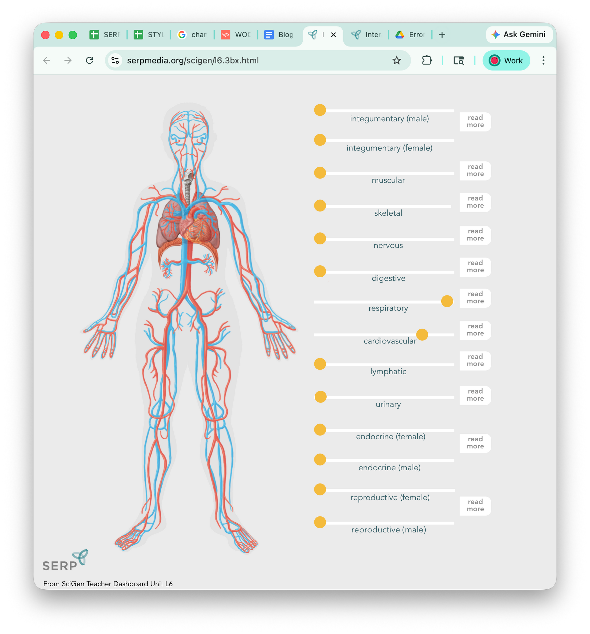 I guess my all time hit, if the analytics are to be believed, is the interactive anatomy model I drew for SciGen. It has superimposed images of each organ system, and users can use sliders to change the transparency of each system, making their own unique anatomical figures. I think of it as a sophisticated toy: you wouldn’t want a surgeon using it as a map for open heart surgery, but it does allow the rest of us to play visually with the amazing interconnectedness of systems in our bodies.