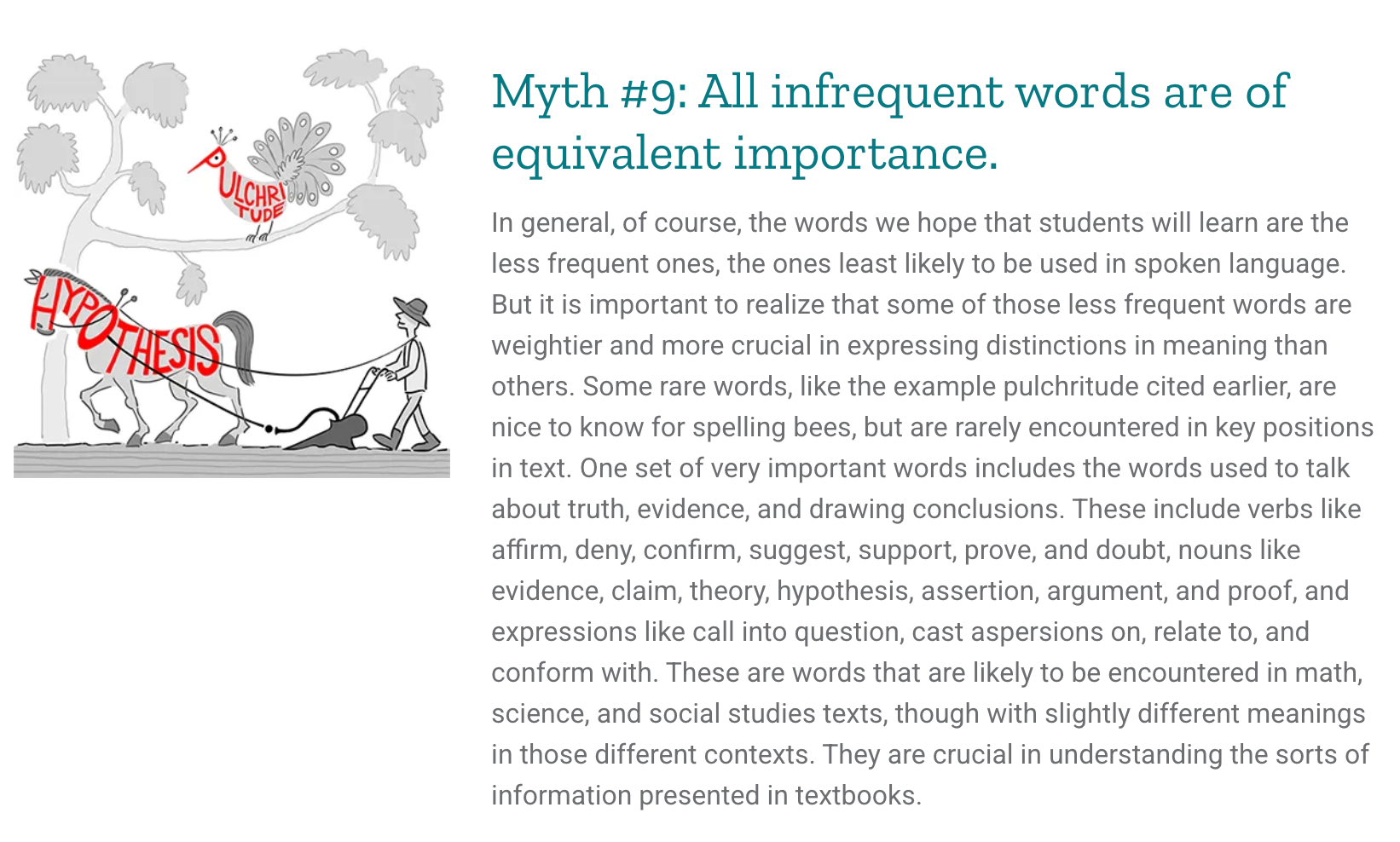 Twelve Vocabulary Myths Debunked. I like them because they’re simple, nicely drawn, and they use visual wit to illuminate the content they go with.